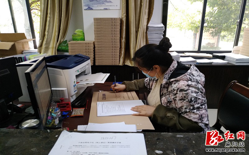 工作人员为麻阳乡村养殖专业合作社整理资料