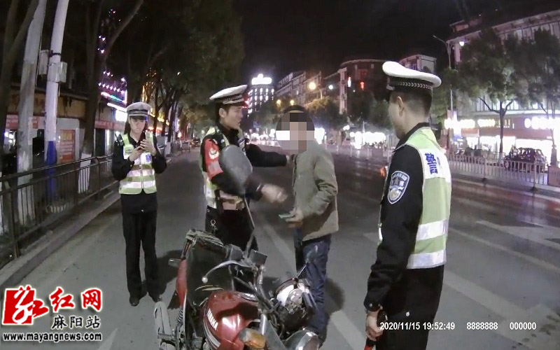 11月15日晚,麻阳公安局交管中心在建行路口查获两起酒驾交通违法行为。