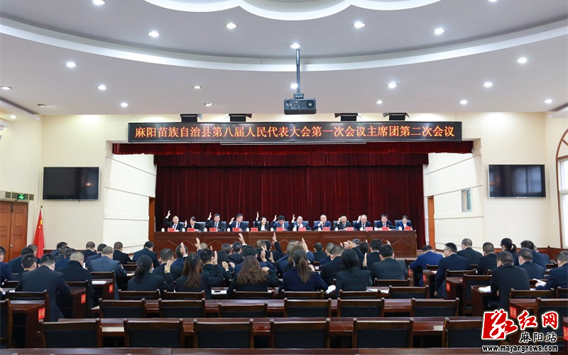 会议以举手表决方式通过候选人建议名单,通过了《关于设立麻阳苗族自治县第八届人民代表大会六个专门委员会的决定》;宣读了《大会主席团向各代表团提出专门委员会主任委员、副主任委员、委员建议名单》(草案),并提交各代表团酝酿讨论;通过了《县八届人大一次会议宪法宣誓工作方案》;会议还就民生实事项目进行了情况说明。