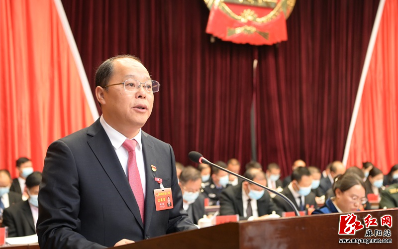 在热烈的掌声中,胡宏林代表县人民政府作工作报告。报告分为四个部分:一是砥砺奋进的五年;二是今后五年工作;三是2022年的主要工作;四是加强政府自身建设。